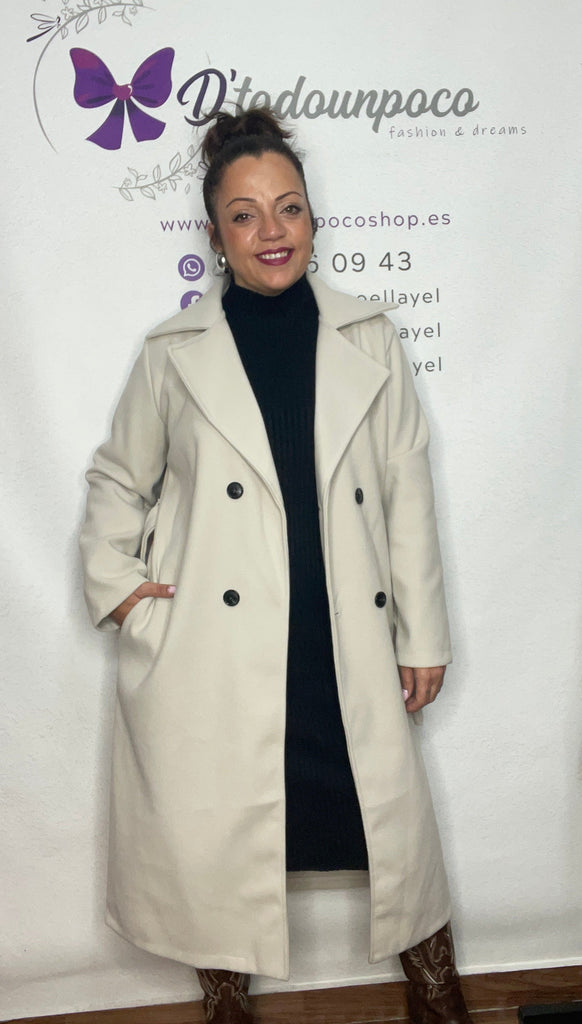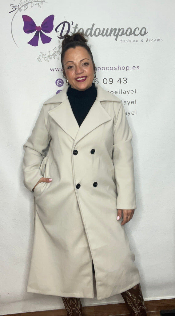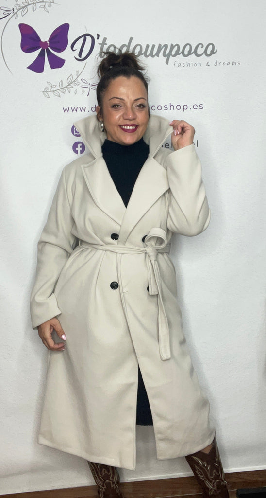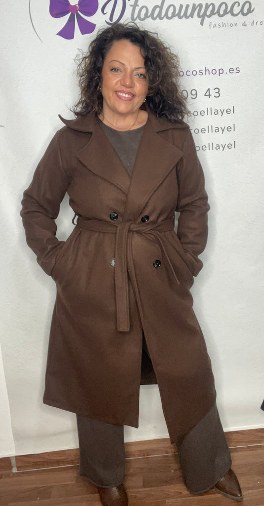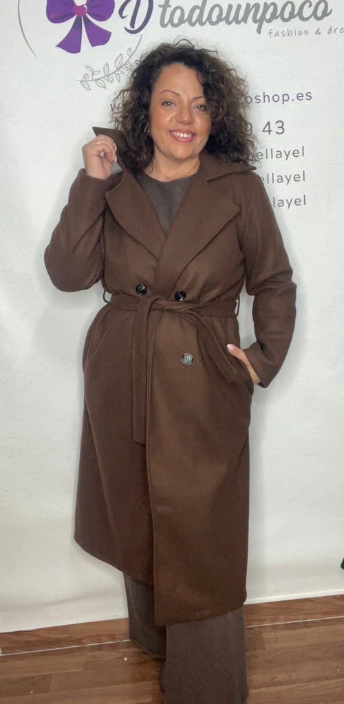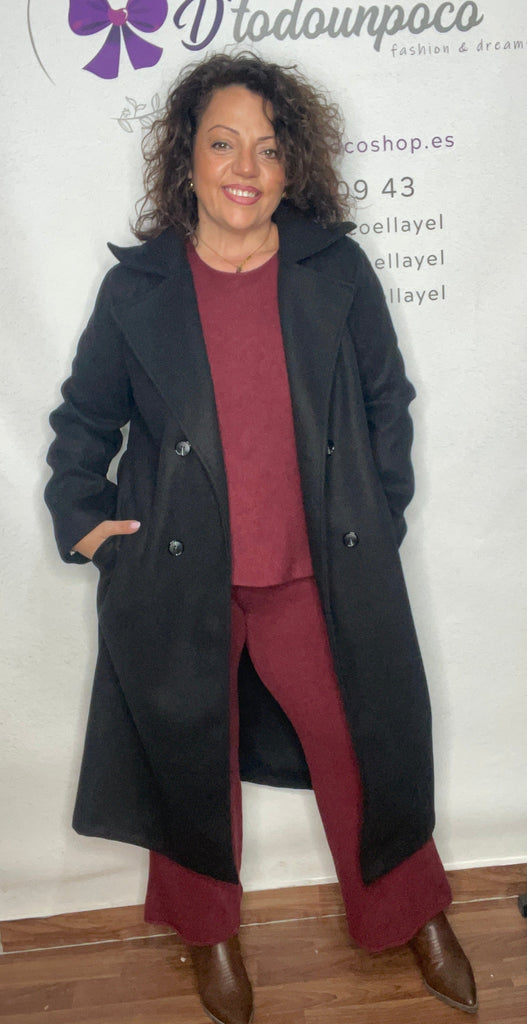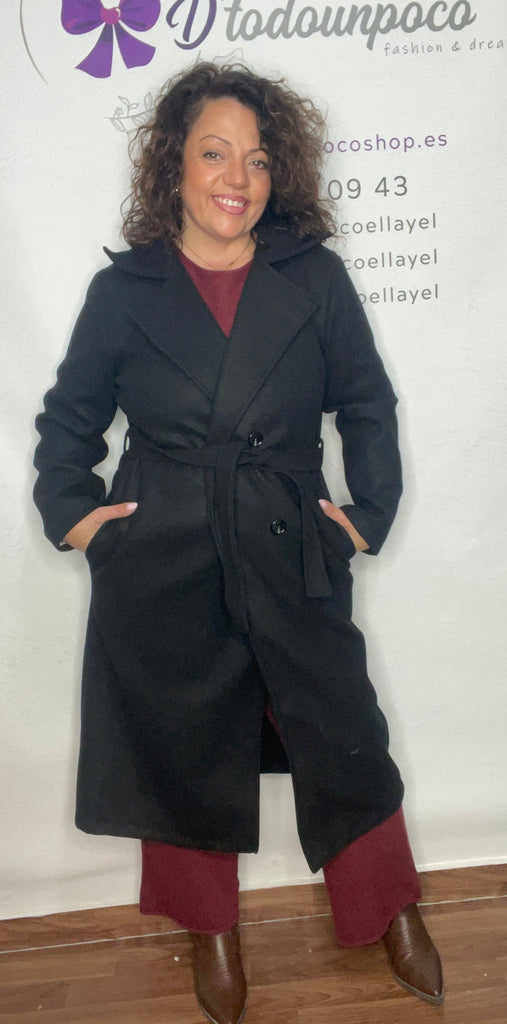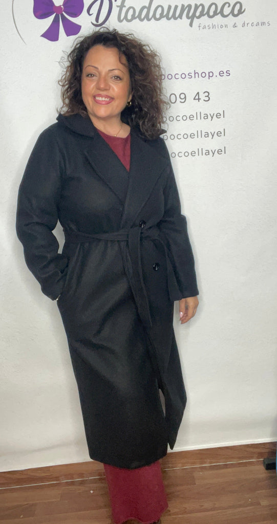 Abrigo de paño sin forro, talla unica de la 36 a la 42/44 manga larga cuello esmoquin y lleva dos botones para abrochar y cordón para ajustar, largo.