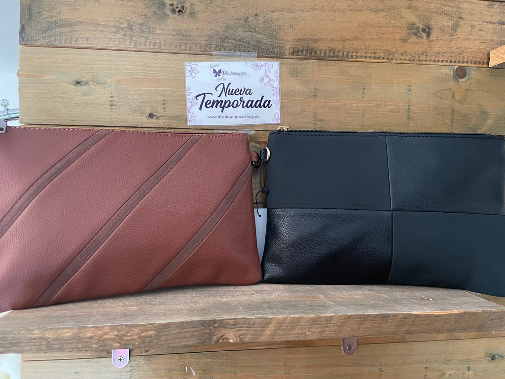 Bolso cartera, combina terciopelo y polipiel, cremallera y bolsillo trasero, asa de mano y bandolera para cruzar. MEDIDAS:028*18cm