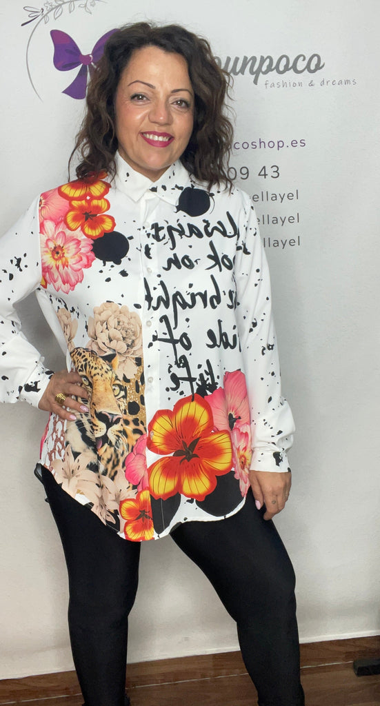 Camisa talla unica de la 36/38 a la 44, MEDIDAS: 57cm de sisa, manga larga con puño y boton, es mas larga por detras y se abrocha entera.