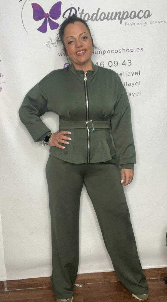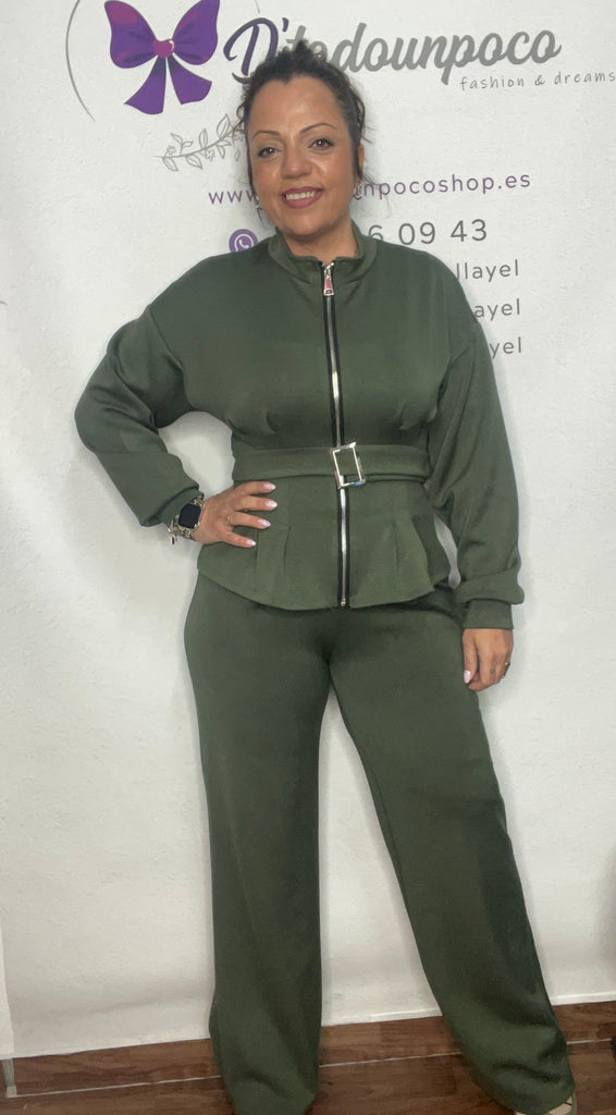 Chándal talla unica de la 36 a la 40, manga larga cremallera y cinturón , pantalón tiro alto pata ancha y sin bolsillos ideal para mis chicas altas.