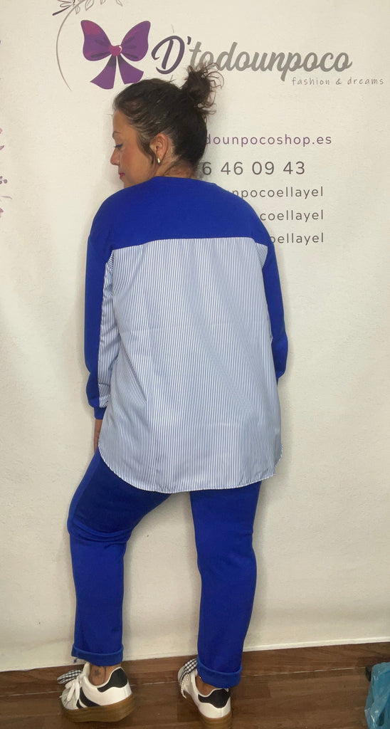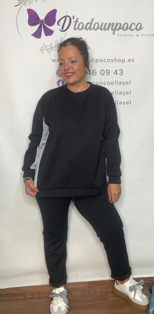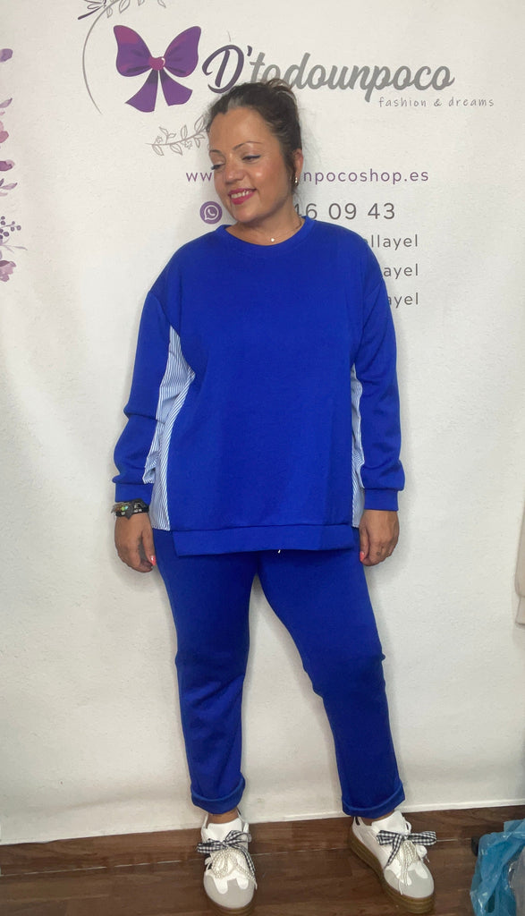 Chándal talla unica de la 36 a la 42/44, MEDIDAS: sisa 60cm, cintura 36cm sin estirar la goma y cadera 50cm. PANTALON: recto con bolsillos y elástico y cordón en la cintura. TEJIDO:55% viscosa, 40% poliéster y 5% elastano