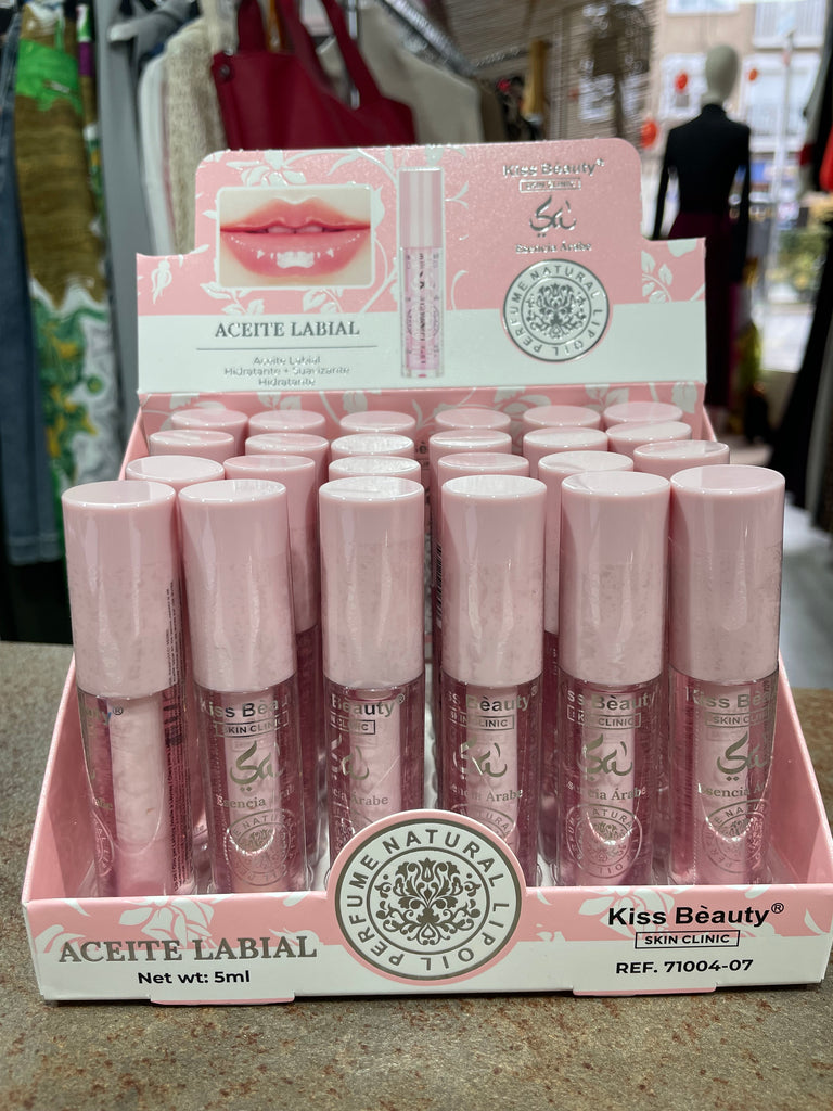 Gloss con mucho brillo labios carnosos y huele al perfume yara