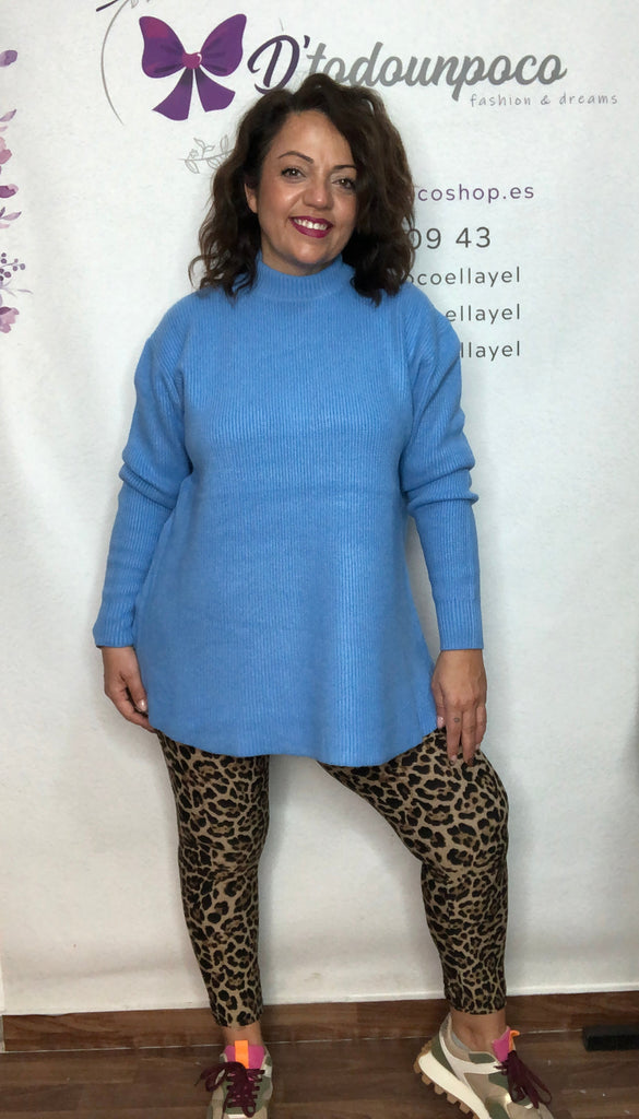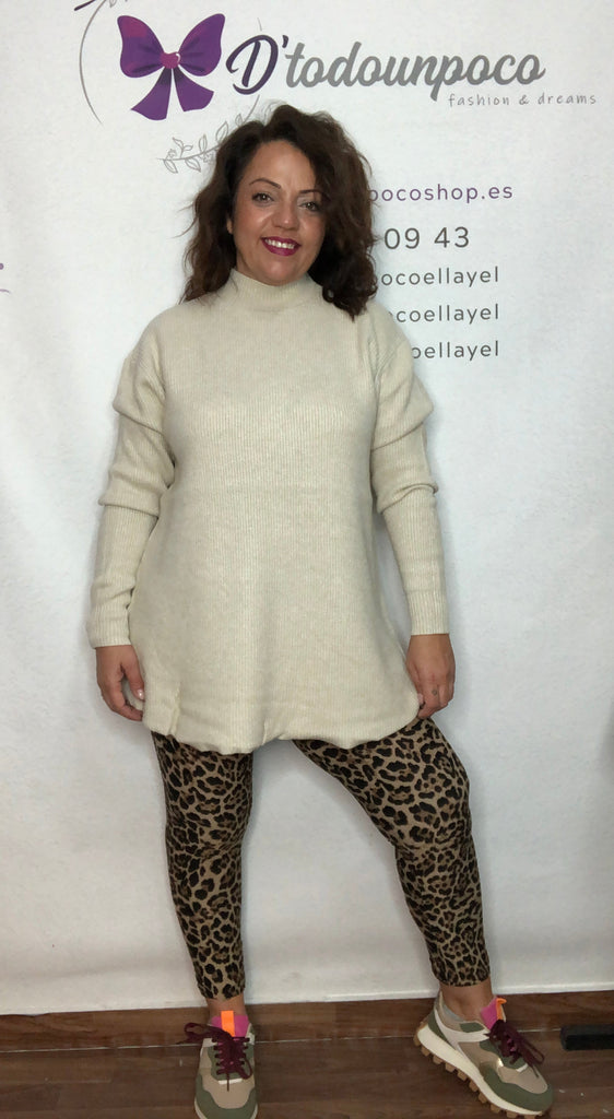 Jersey lana suave agradable y con cuerpo, talla unica de la 36 a la 48, mangas largas, cuello caja, y largo.