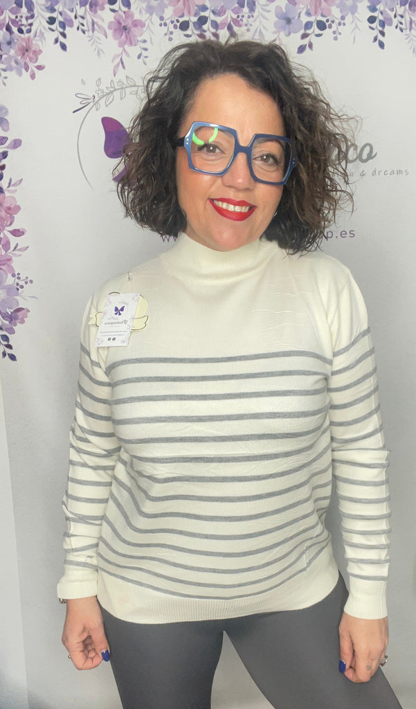 Jersey dos tallas M/L XL/XXL, es de punto, cuello caja, manga larga y largo hasta la cadera
