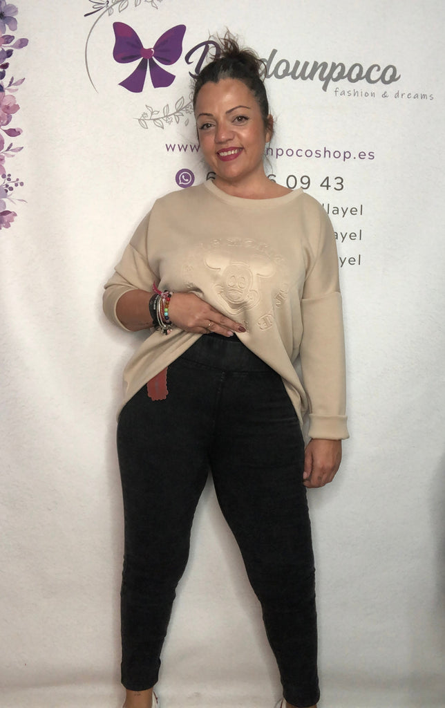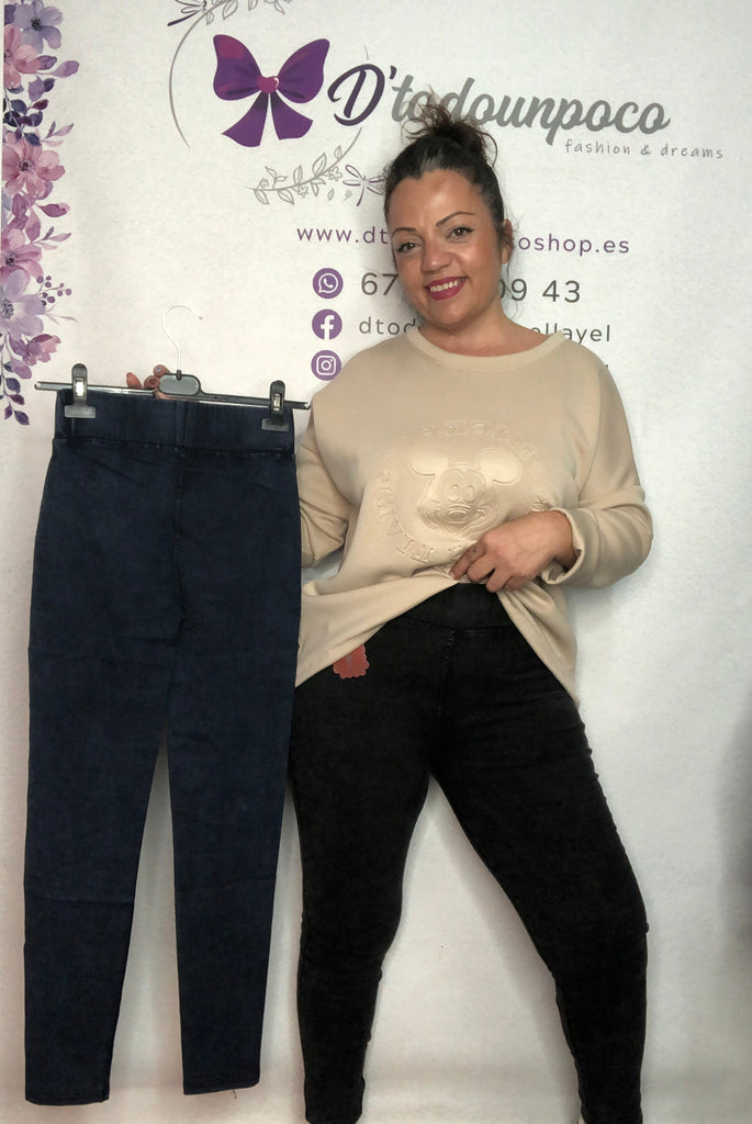 Leggin por tallas tejido simulando vaquero tiro medio y pitillo, tallas desde la M a la 3XL, yo llevo la L.