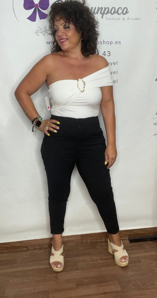 Pantalón por tallas S,M y L, tiro alto con cremallera y botón invisible, bolsillos laterales y pitillo. es licra y elásticos yo llevo la talla M