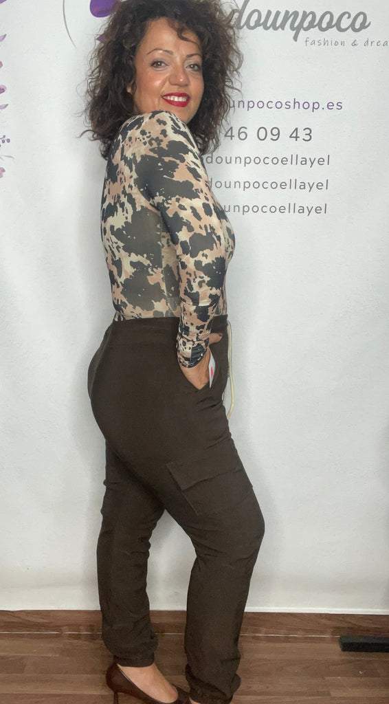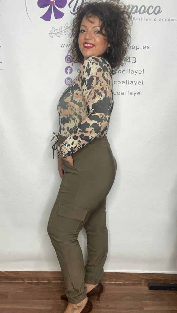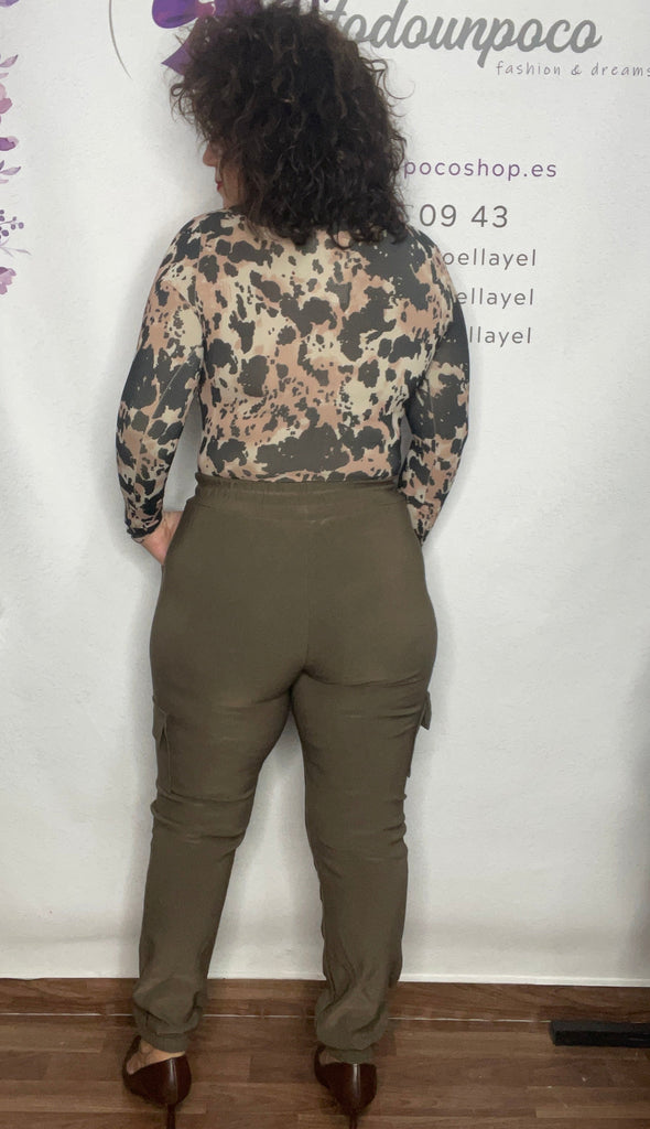 Pantalón por tallas de la M/L:36/40, XL/XXL:42/46 y 3XL/4XL 46/50, estilo cargo, puño con goma bajo bolsillos en los laterales de la rodilla, bolsillos y elástico y cordón en la cintura. Tejido muy agradecido y cómodo.