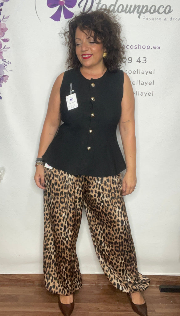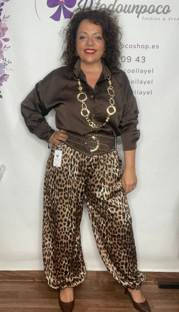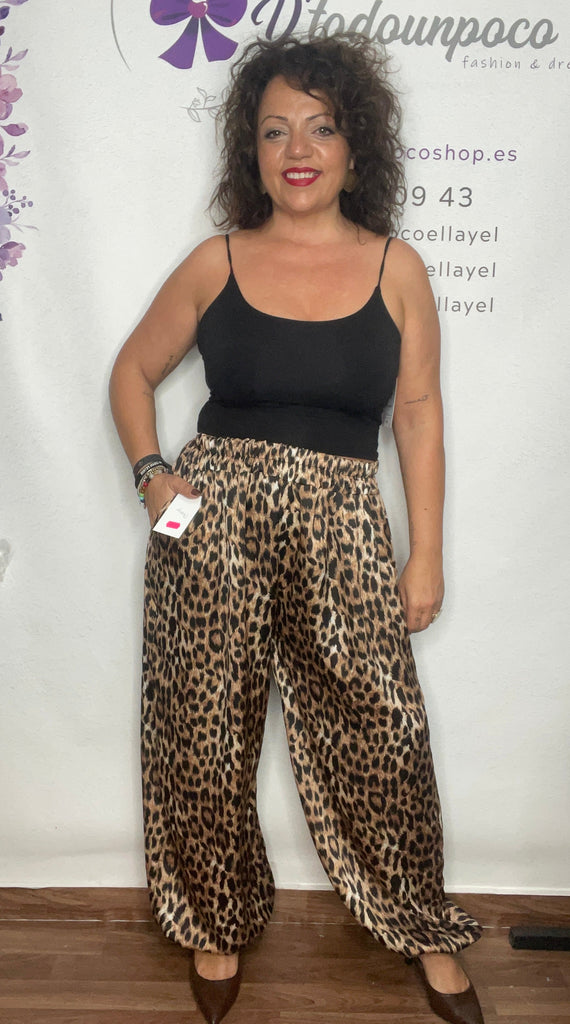 Pantalón bombacho en raso, dos tallas la pequeña de la 36/38 a la 42/44 y la talla grande de la 44 a la 48/50, Elástico en la cintura y en los puños y lleva bolsillos laterales.