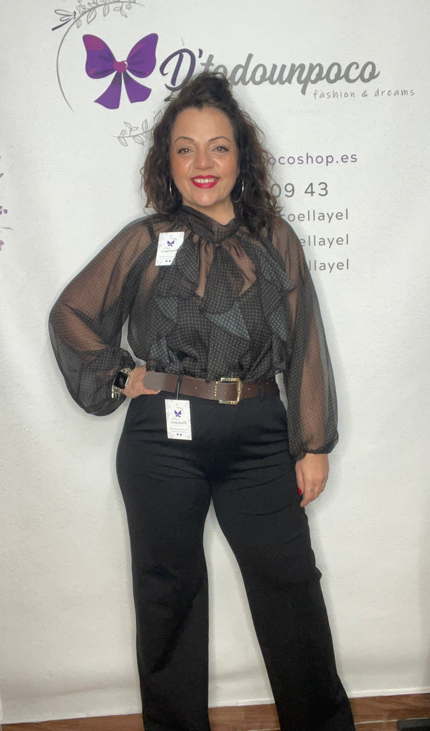 Pantalón por tallas desde la S a la XXL, pata ancha bolsillos laterales tiro alto y con el cinturón incluido.