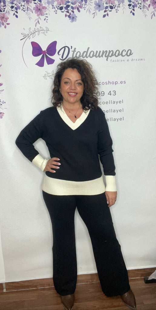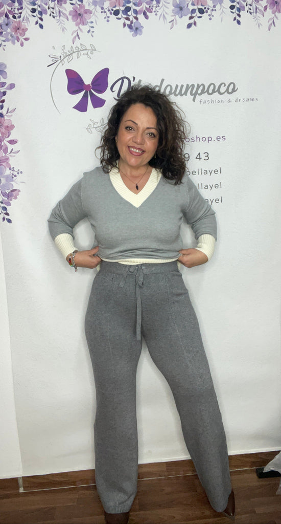Pantalón de punto tiro alto y pata ancha, dos tallas S/M y L/XL, elástico en la cintura.