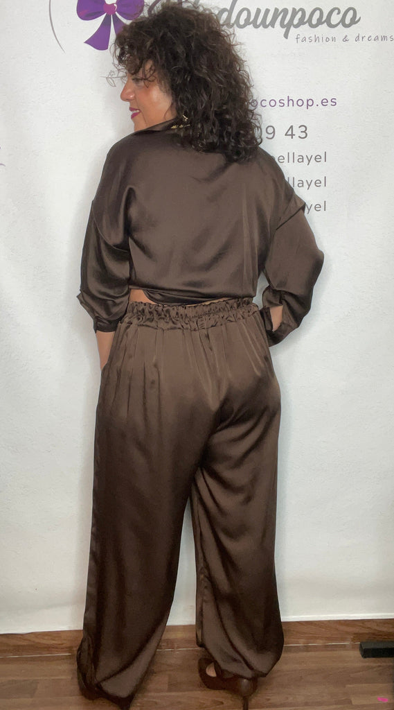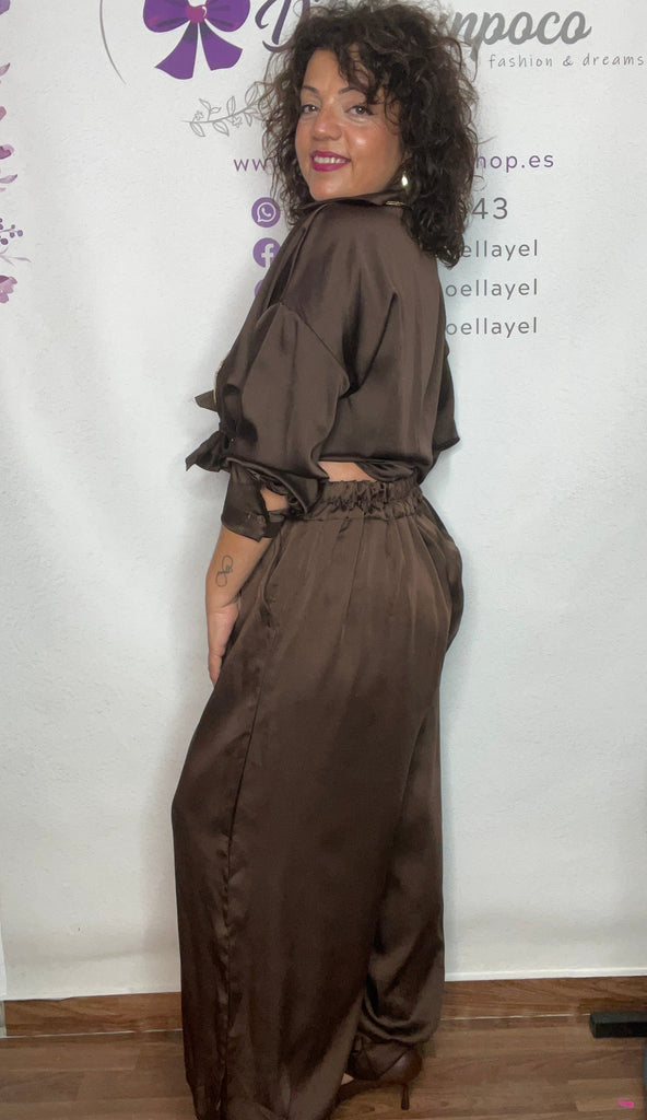 Pantalón talla unica de la 42 a la 46/48, elástico en la cintura por detrás por delante es liso, bolsillos laterales y el puño de bajo es sin elástico.