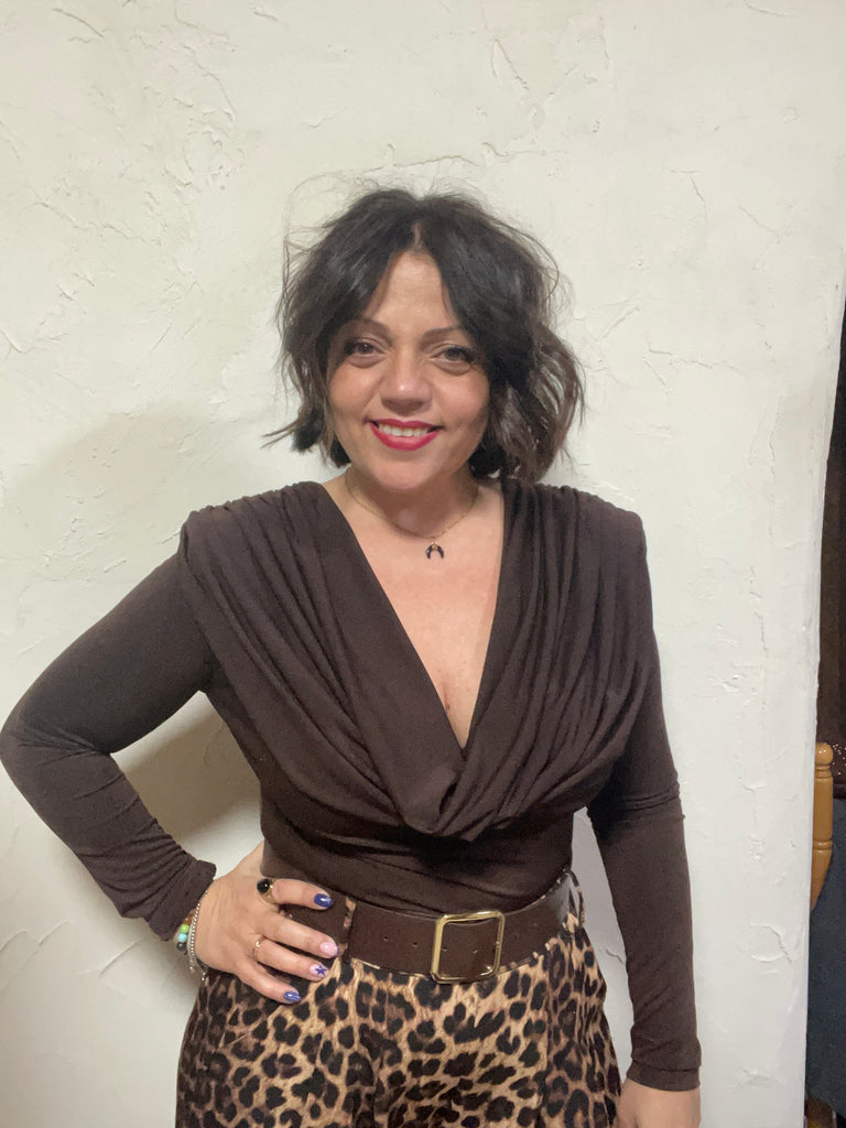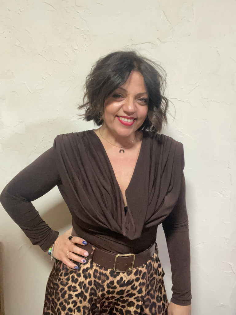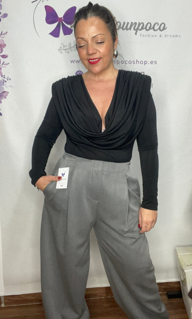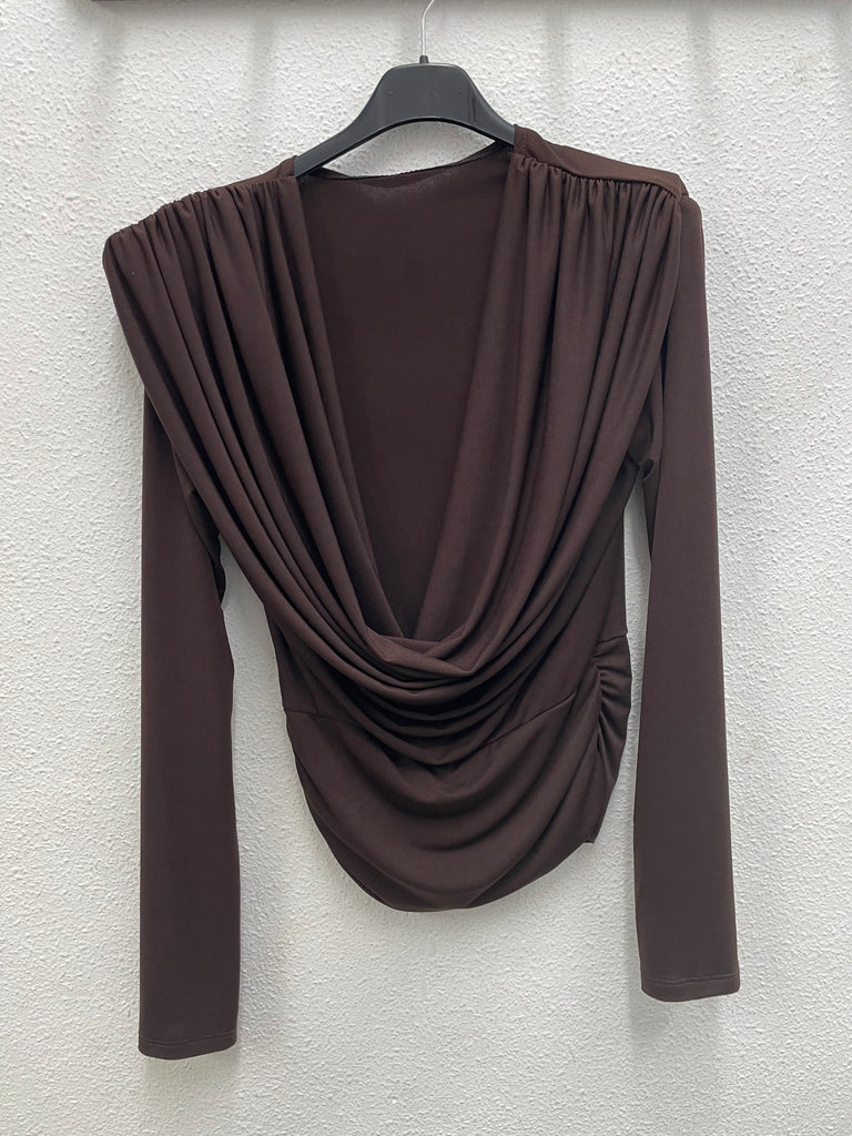 Top talla unica de la 36 a la 42/44, manga larga con hombreras y un escote divino, es largo hasta la cadera.