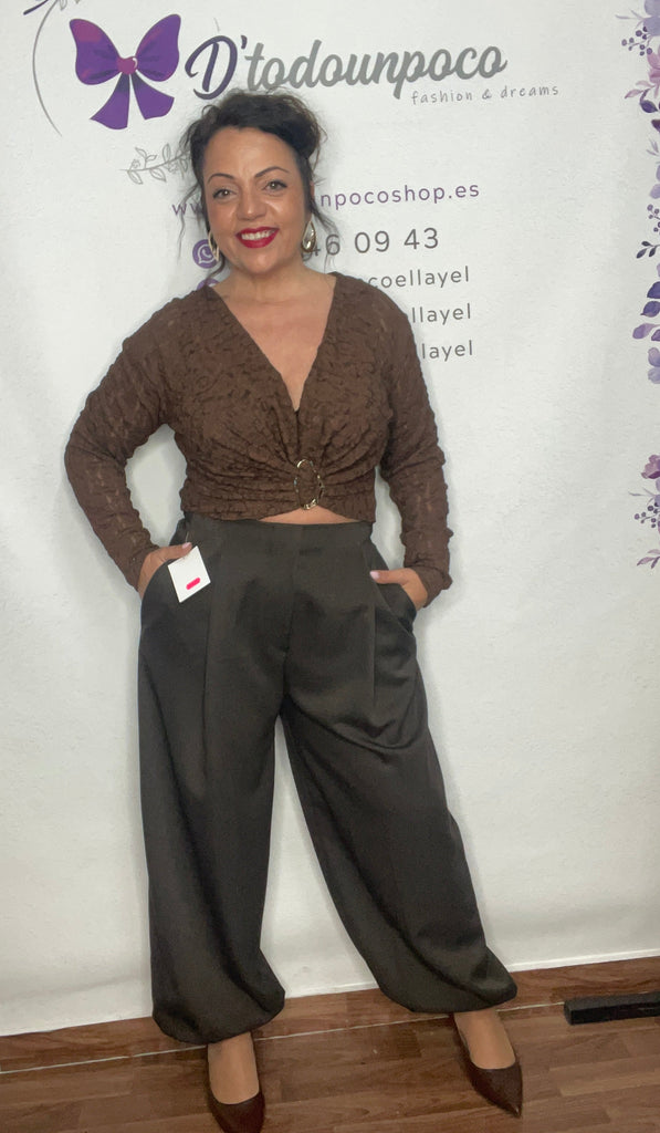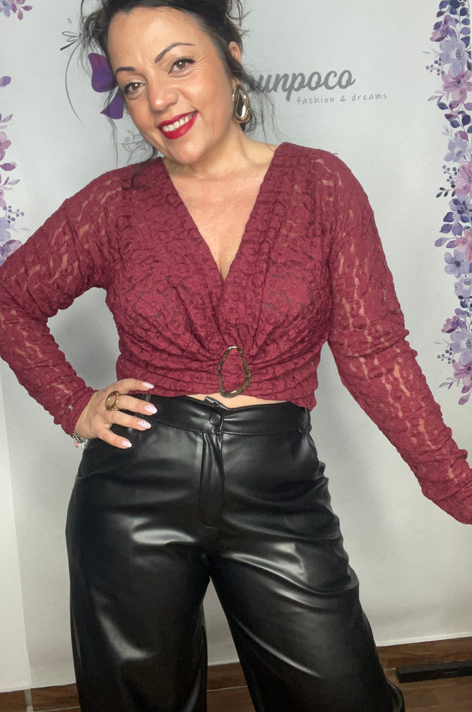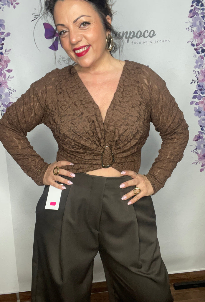Top talla unica de la 36/38 a la 42/44, manga larga escotazo y adorno en dorado.