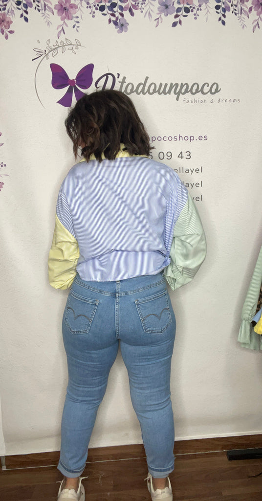 Vaquero pitillo tiro medio tallas de la 38 a la 48, yo llevo la 38 y de cintura me esta un pelin grande.
