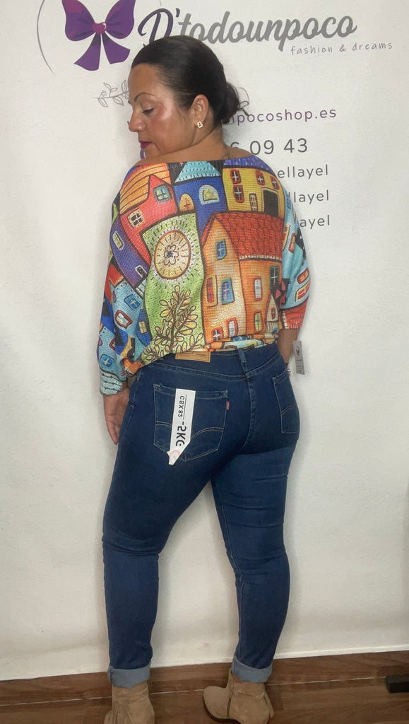 Vaquero pitillo elástico, tiro medio por el ombligo, inspiración y -5Kg, talla de la 34 a la 44, yo llevo la talla 40, Recomendación pedir una talla mas de la que uses.