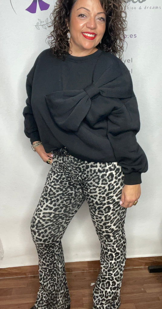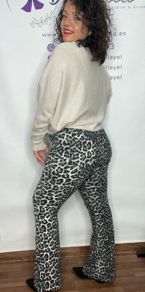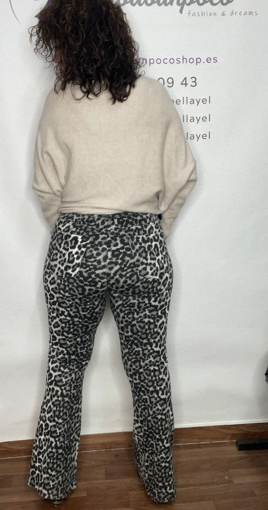 Vaquero campana tiro medio estampado animal print por tallas desde la 34 a la 42 YO llevo la talla 40.