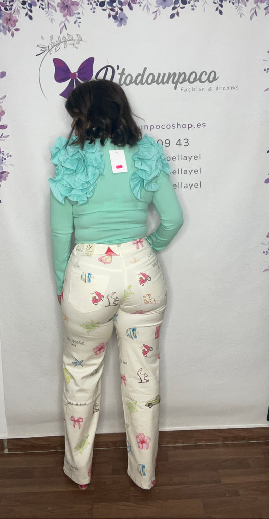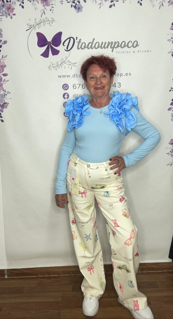 Vaquero por tallas de la 34 a la 42, elástico tiro medio y pata ancha, es un vaquero en tendencia.